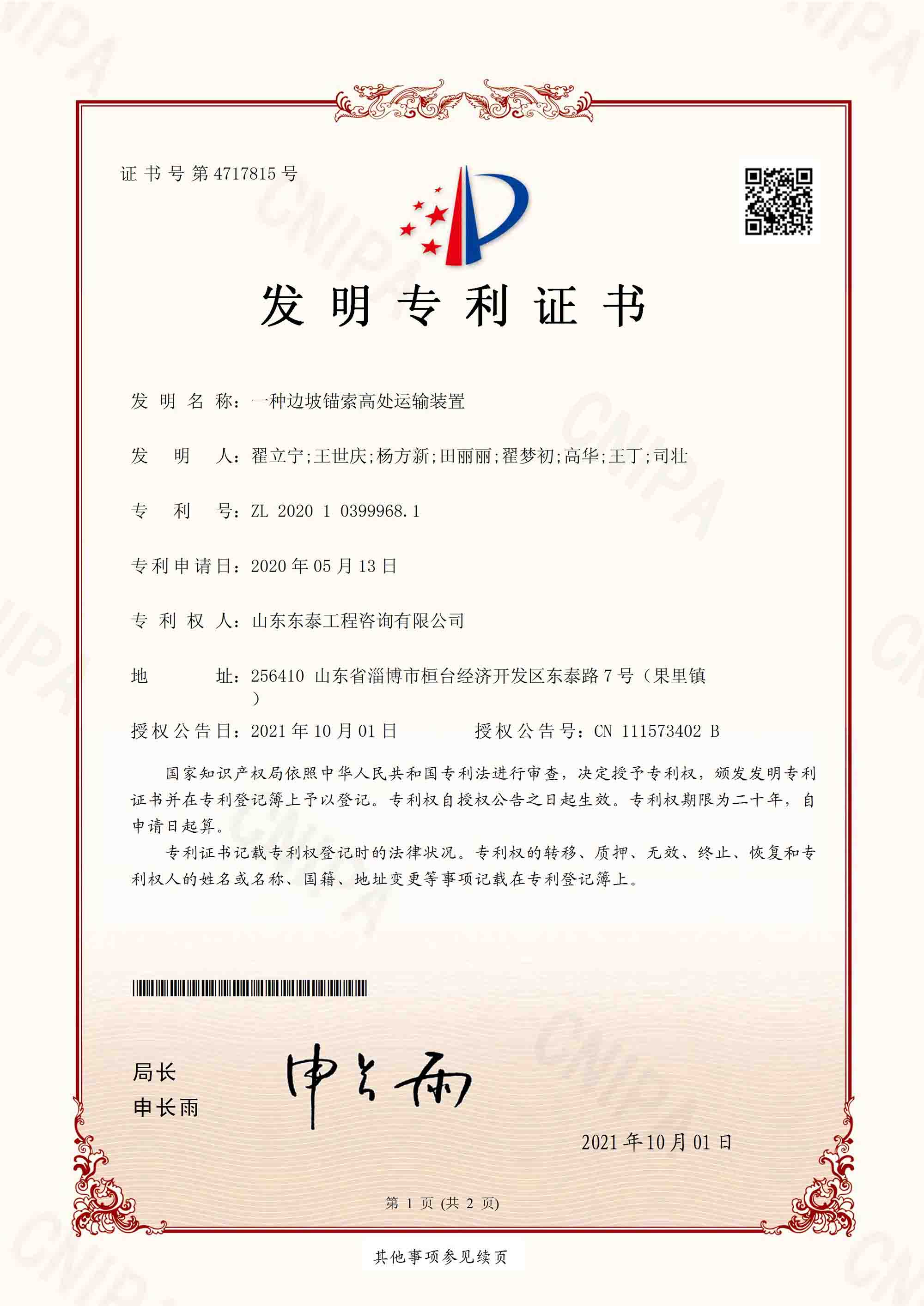imgs------>[{"id":6504,"title":"發明專利:評價涉路工程施工期間交通組織方案優劣的系統及方法","shortTitle":"","img":"/public/uploads/default/2024/12/31/1735620131436_source_180009發明:評價涉路工程施工期間交通組織方案優劣的系統及方法.jpg","createdAt":"2024-10-31T16:00:00.000Z","description":"...","pinyin":"kejichuangxin","name":"科技創新","path":"/kejichuangxin"},{"id":6505,"title":"發明專利:一種隧道二襯裂縫處理鉆孔孔位檢測工具及其工作方法","shortTitle":"","img":"/public/uploads/default/2024/12/31/1735620178161_source_180018發明:一種隧道二襯裂縫處理鉆孔孔位檢測工具及其工作方法.jpg","createdAt":"2024-10-31T16:00:00.000Z","description":"...","pinyin":"kejichuangxin","name":"科技創新","path":"/kejichuangxin"},{"id":6506,"title":"發明專利:一種邊坡錨索編織加工平臺","shortTitle":"","img":"/public/uploads/default/2024/12/31/1735620219775_source_190021發明:一種邊坡錨索編織加工平臺.jpg","createdAt":"2024-10-31T16:00:00.000Z","description":"...","pinyin":"kejichuangxin","name":"科技創新","path":"/kejichuangxin"},{"id":6507,"title":"發明專利:一種邊坡錨索高處運輸裝置","shortTitle":"","img":"/public/uploads/default/2024/12/31/1735620279792_source_190021發明:一種邊坡錨索高處運輸裝置.jpg","createdAt":"2024-10-31T16:00:00.000Z","description":"...","pinyin":"kejichuangxin","name":"科技創新","path":"/kejichuangxin"},{"id":6508,"title":"發明專利:一種邊坡鉆孔后噴射漿液成套管防塌孔的施工方法","shortTitle":"","img":"/public/uploads/default/2024/12/31/1735620326420_source_190021發明:一種邊坡鉆孔后噴射漿液成套管防塌孔的施工方法.jpg","createdAt":"2024-10-31T16:00:00.000Z","description":"...","pinyin":"kejichuangxin","name":"科技創新","path":"/kejichuangxin"}]
